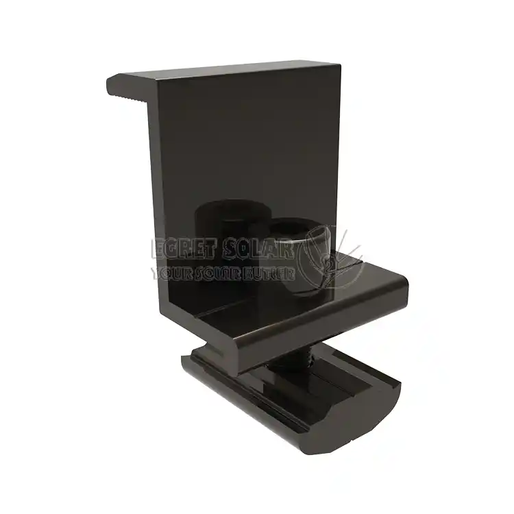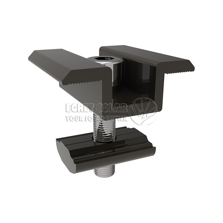 Thefinis Clamps of *Egret Solariumiumut mediae pressionis clausulae, compatible cum crassitudine corporis componentis (plerumque 30-40mm) esse potest.nativussecundum varias solutiones machinalis, et fit ex aluminio anodized mixturae materiae ad vitandam corrosionem cum corpore componente et munus insulantem simul agere.