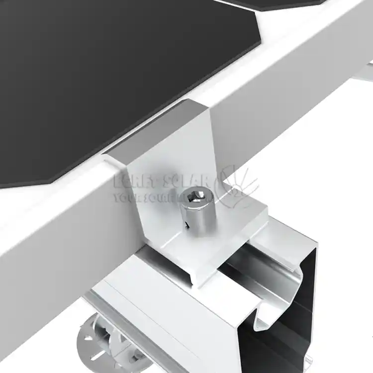 Medius Clamp in media acie constitutus est et fibulae internae tabulae duorum partium adjacentium simul, vim a duobus adiacentibus partibus transmissam sustinentes. Hoc maxime resistit vis sursum venti elevatio. Utrumque fines Medio Fibulae aperti sunt et tabulam tenere solent.