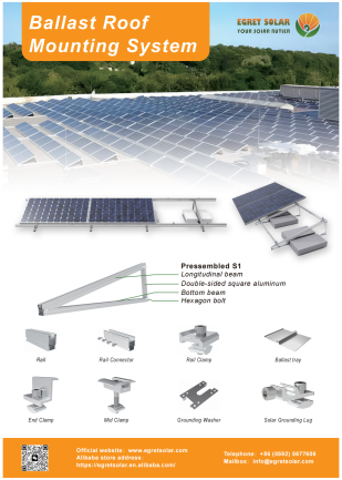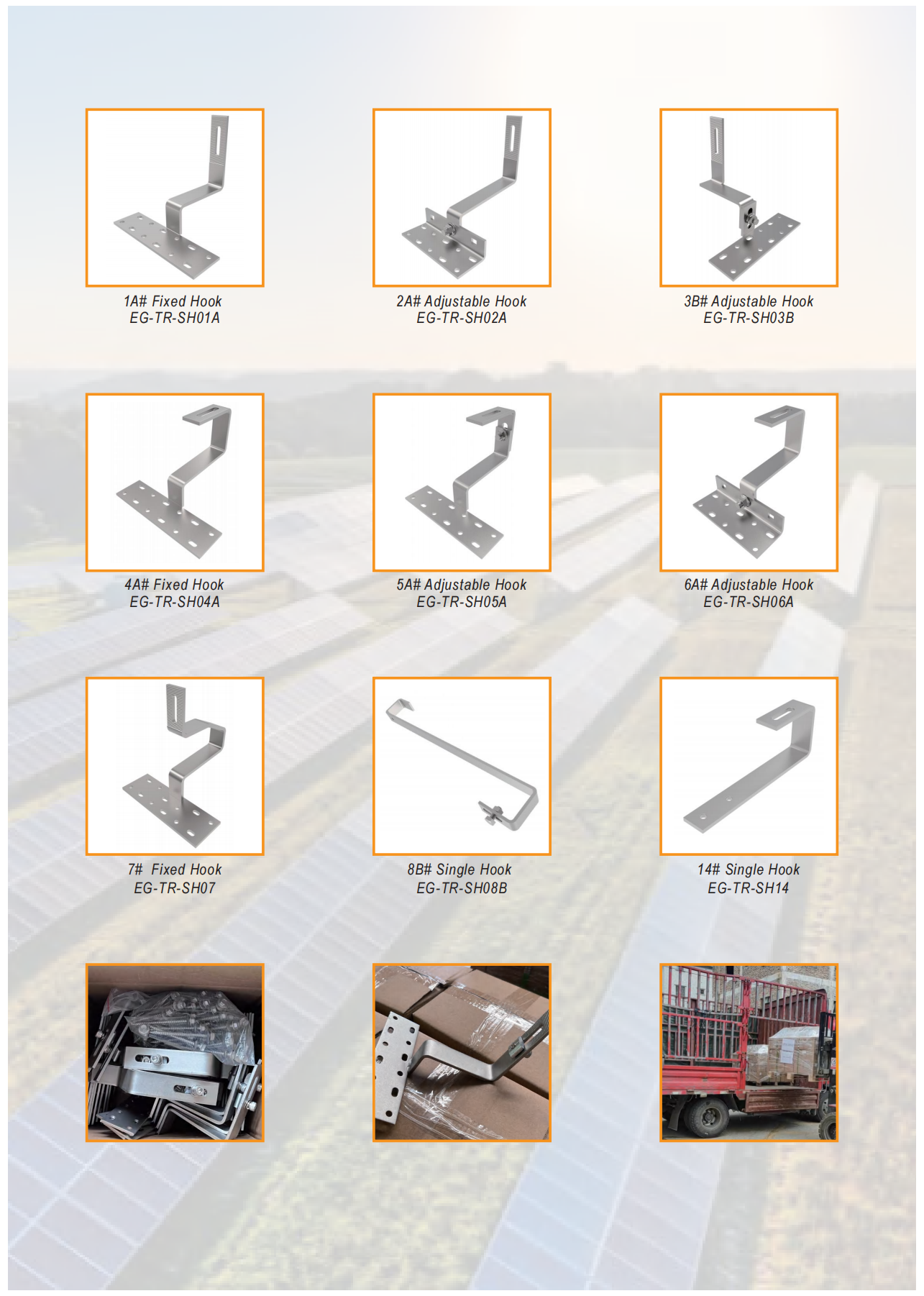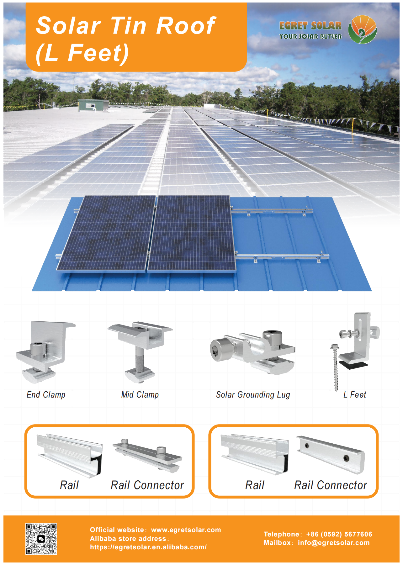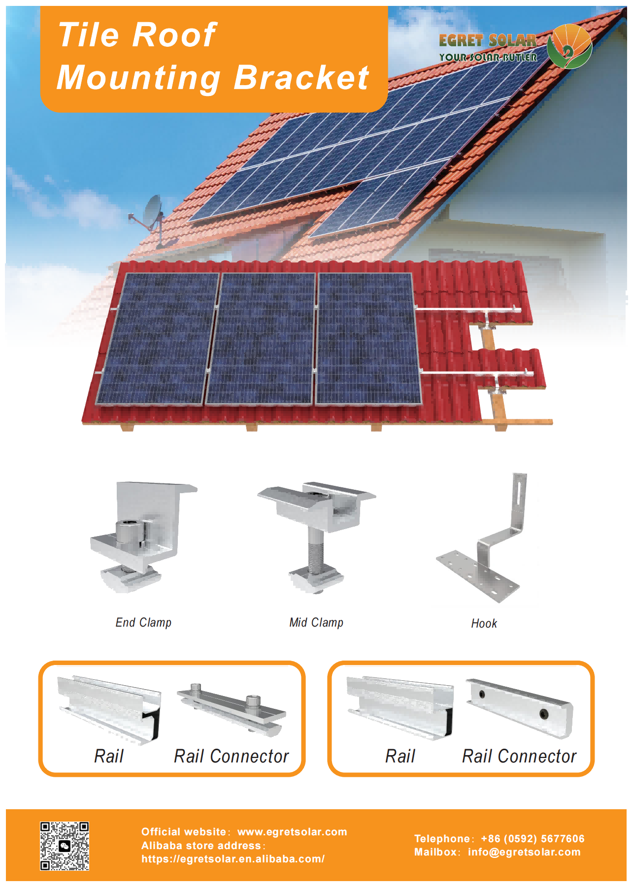 Egret solaris plurimos exempla in se ferre. Pelagus products promotus est aliud secundum diversas ambitibus. Sunt brevi rail bracket systems, l pede bracket systems et Populus Novifacta fronte et tergo pedites systems quod potest esse in metallum tecta; Carbon Steel ascendens system et aluminium carportation ascendens ratio ad solaris carportat; Erat ascendens ratio cum una columna et terram ascendens ratio cum duplex columna ad terram usum; Tile tectum adscendens bracket est plerumque propter tegulam tecta et hamo et rail potest electus secundum ipsam situ; Sanka tectum ascendens ratio et tripode ratio sunt maxime communiter propter plana tecta. Dic nobis installation sem, ventus celeritate, nix onus, budget, etc et nos scissor consilio tibi. Potes credere nobis toto corde.
