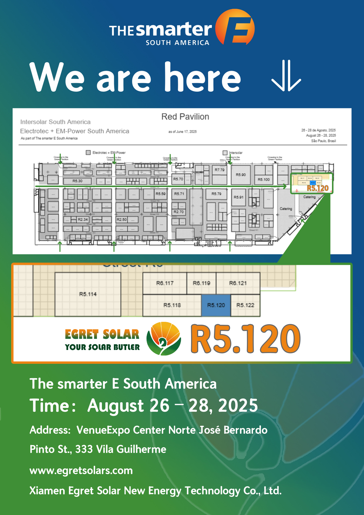 Ut a key ludio ludius in novam industria sector,Xiamen Egrare Solaris Novum Energy Technology Co., Ltd.Et showcase ejus core products et technica solutions ad smarter E Meridionalis America MMXXV in Brazil ex August 26-28, MMXXV, ut de progressionem et cooperante industria sociis.